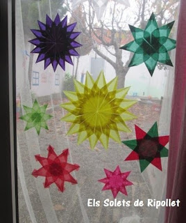 Así que estos días hemos estado preparando nuevas estrellas para colgarlas en las cristaleras y crear un ambiente festivo de Adviento. Así de preciosas lucen en la puerta de nuestro patio cuando la luz natural las ilumina (incluso en un día nublado).