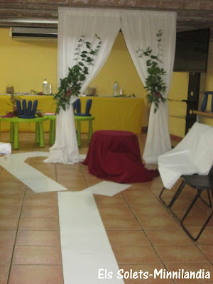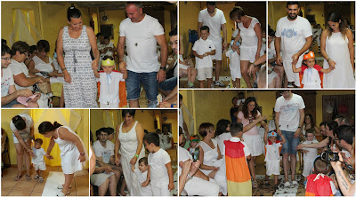 Y una vez que estábamos todos, se inició la ceremonia. Cada pequeño, acompañado por su papá-mamá siguió el camino correspondiente hasta llegar a un altar en el que cada uno recibió su libro como recuerdo de todo un curso de aventuras.
