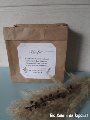 Con la intención de que todos los asistentes pudieran participar en la ceremonia, creamos unas bolsitas de confeti ecológico con hojas de flores y árboles para que los familiares pudieran tirárselas a cada niño que pasaba por el camino con los mejores deseos que tuvieran para cada uno de ellos. Así cada familia recibía de una manera tangible un ‘baño’ de buenos deseos.