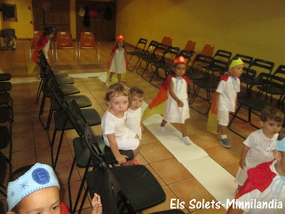 Y aunque todos acabábamos un curso que en septiembre daría comienzo a uno nuevo, no para todos era igual ya que en septiembre ya no estarían en nuestra escuelita, así que esa diferencia requería una mención especial. Estos llevaban su corona que les habíamos preparado para celebrar el cumpleaños al estilo Waldorfssori y una capa especial que les habíamos preparado a cada uno con telas de algodón orgánico. Esto significaba que deberían hacer un camino más largo hasta llegar al altar cruzando un arco simbólico.