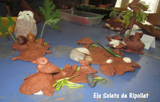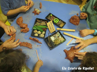 Una propuesta con arcilla y elementos naturales. Para ello recolectamos elementos característicos de cada estación y que desprendieran ese olor tan especial que al percibirlos nos hace revivir momentos vivimos (piñas, palos, castañas, hojas secas, florecillas aromáticas, conchas,…)