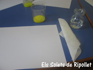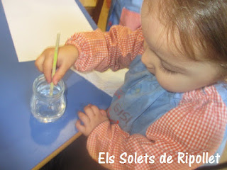 Mireu, aquest és el pinzell Tipy que s’acaba de despertar, però oh! en Tipy s’ha de rentar la cara per posar-se guapo (ho diem mentre mullem el pinzell en un pot d’aigua i després l’eixuguem amb la tovallola).